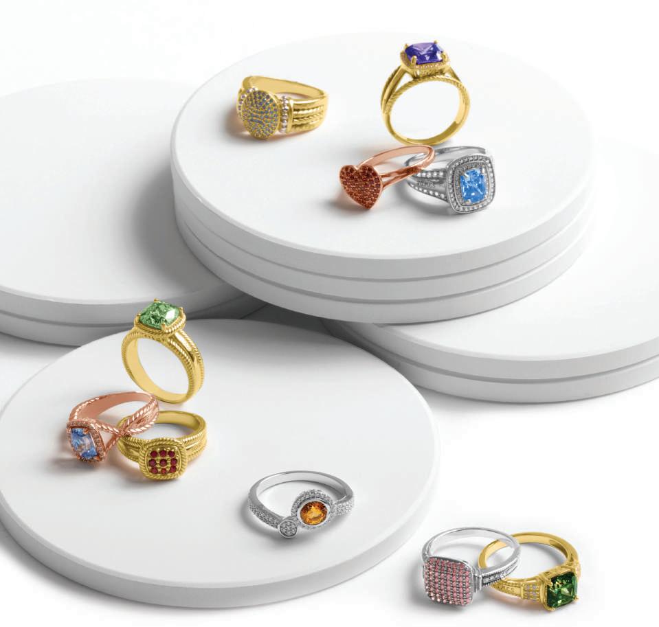 Contrast the vibrancy of your stones and other accents with Celestrium™ covered in a matte carbon finish. (Not available for Journey series, University Collection or Kendra Scott Collection)