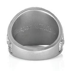 Celebrate your triumphs and those who helped you along the way. A rectangular shield-like stone setting allows an optional crest enhancement to create a bold symbol of dedication, determination and success.