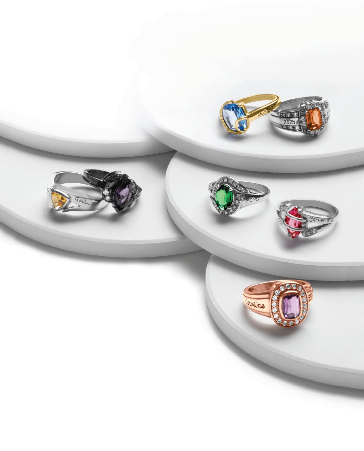 Celebrate your most extraordinary moments with a contemporary style that’s perfect for everyday wear. Make your class ring unique with a gracefully shaped center stone or an alluring pavé arrangement.* Most styles allow engraving on both sides of the ring for a high level of customization.
