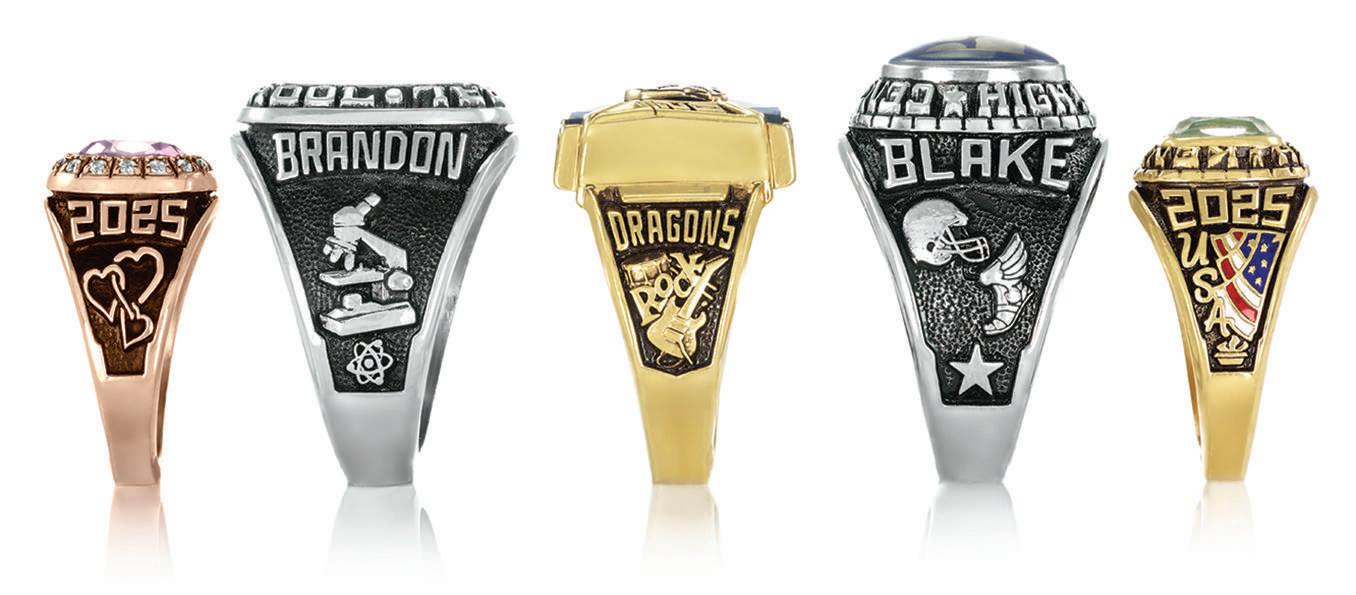 L43 L49Craft a charming, spirited class ring to remind you of your greatest inspirations such as friends, family and special occasions. These intricately elegant ring designs allow customizations such as birthstones and specialty stones in a variety of cuts. Each produces a look as impressive as your accomplishments.