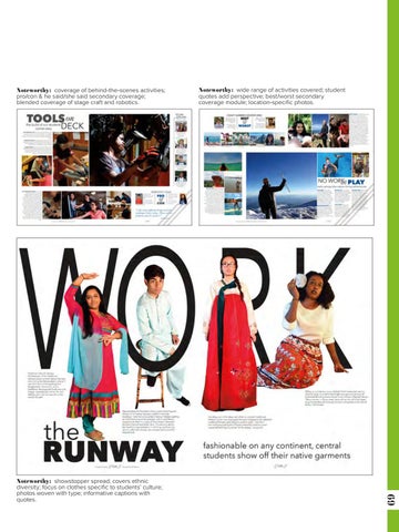 Noteworthy: showstopper spread; covers ethnic diversity; focus on clothes specific to students’ culture; photos woven with type; informative captions with quotes.