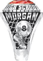 A crest design is mounted to the simulated birthstone as a separate ornament. Choose Polaris Star, Old English Letter, School Monogram or a stone enhancement symbol from pages 34 and 35.