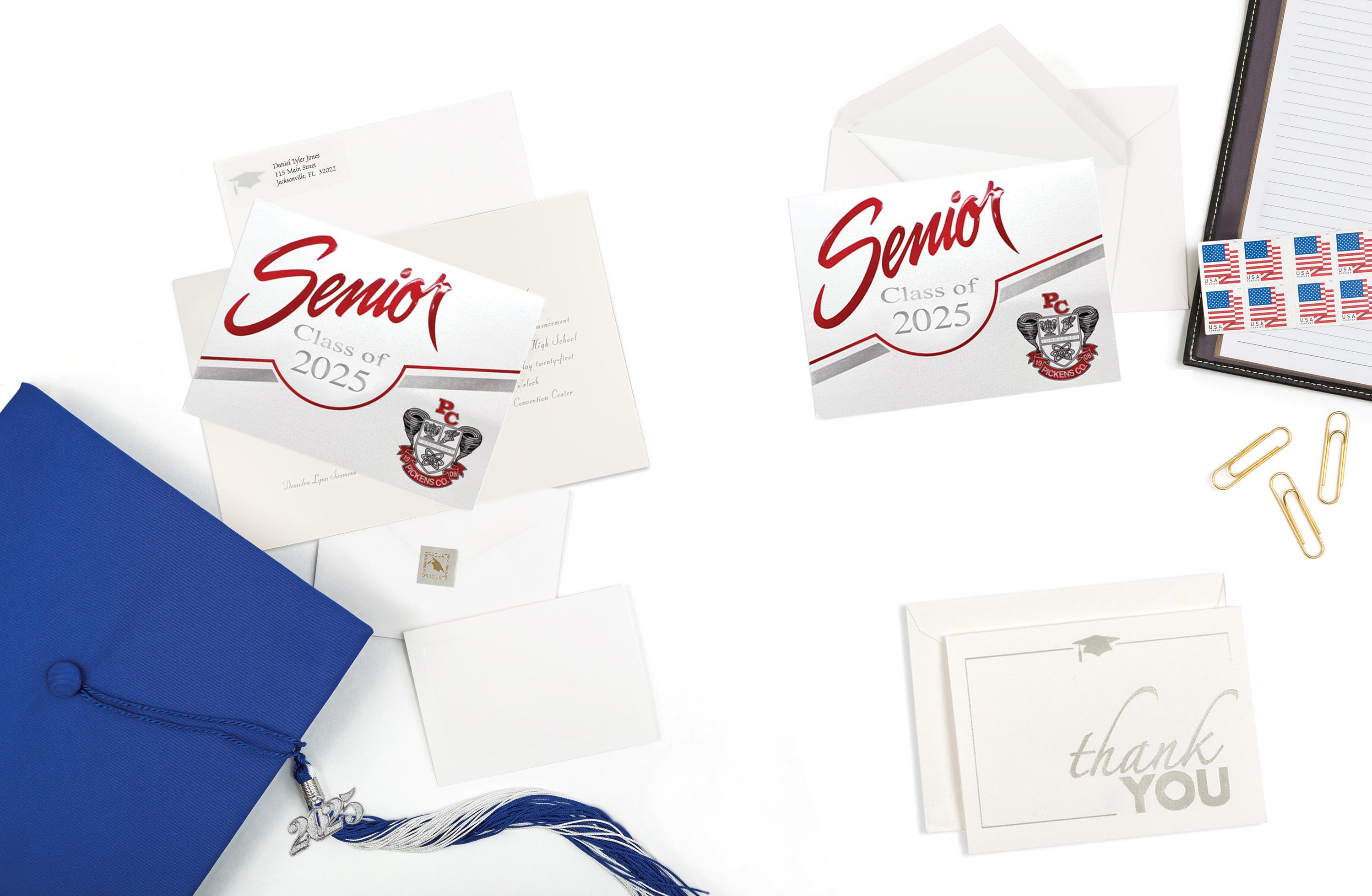 Tell friends, family and all the other important people in your life about your accomplishment! Your announcements feature your school’s unique design such as a crest or logo. The date, time and place information will also be included along with your name.