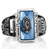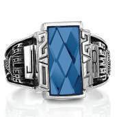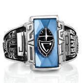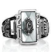 Celebrate your triumphs and those who helped you along the way. A rectangular shield-like stone setting allows an optional crest enhancement to create a bold symbol of dedication, determination and success.
