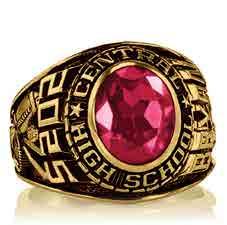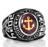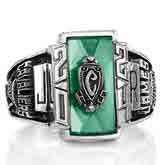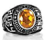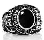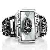 Choose a graduation ring as noteworthy and enduring as you are. Select one of many stone colors and cuts to frame an optional eye-catching crest enhancement. These retro designs feature dramatic angles representing the excitement of each adventure and accomplishment.