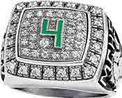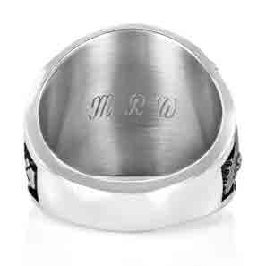 Celebrate your triumphs and those who helped you along the way. A rectangular shield-like stone setting allows an optional crest enhancement to create a bold symbol of dedication, determination and success.