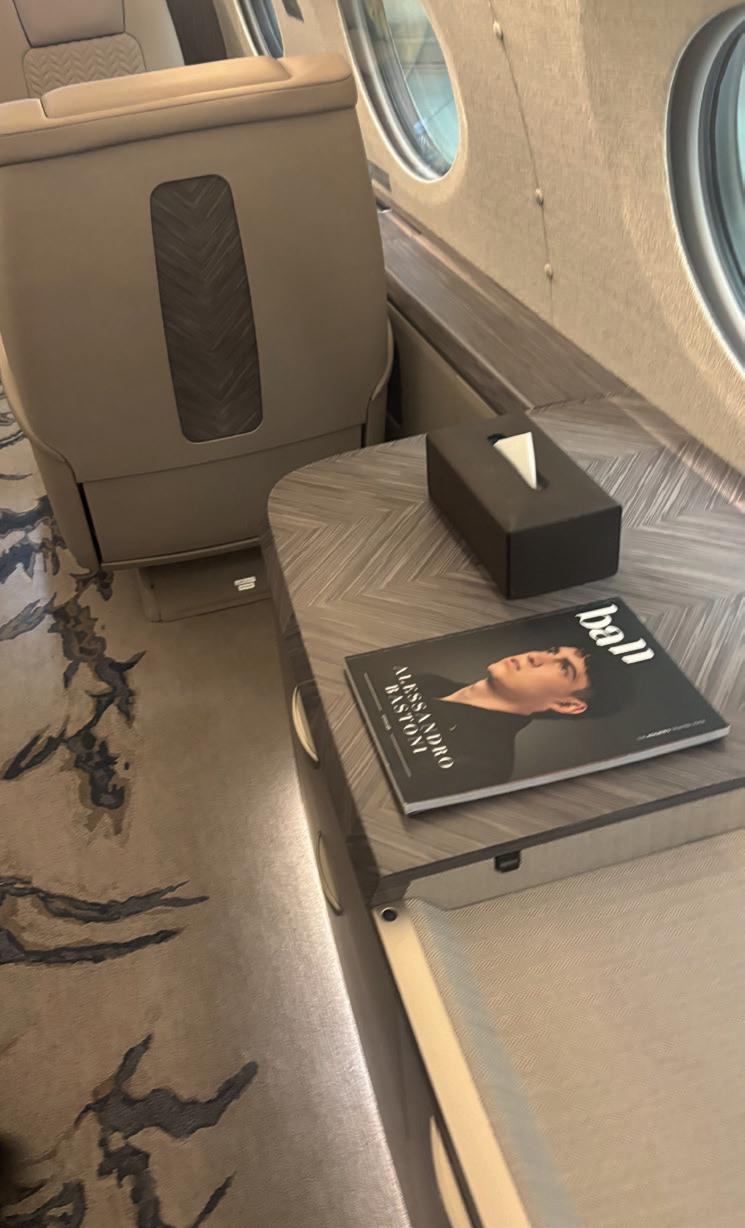 Onboard the Global 7500, the guests were treated to an exquisite catering experience featuring Nobu delights, perfectly paired with endless Ruinart champagne. Our professional crew ensured that the celebration continued in the skies, turning an uncertain situation into an iconic start to the weekend.