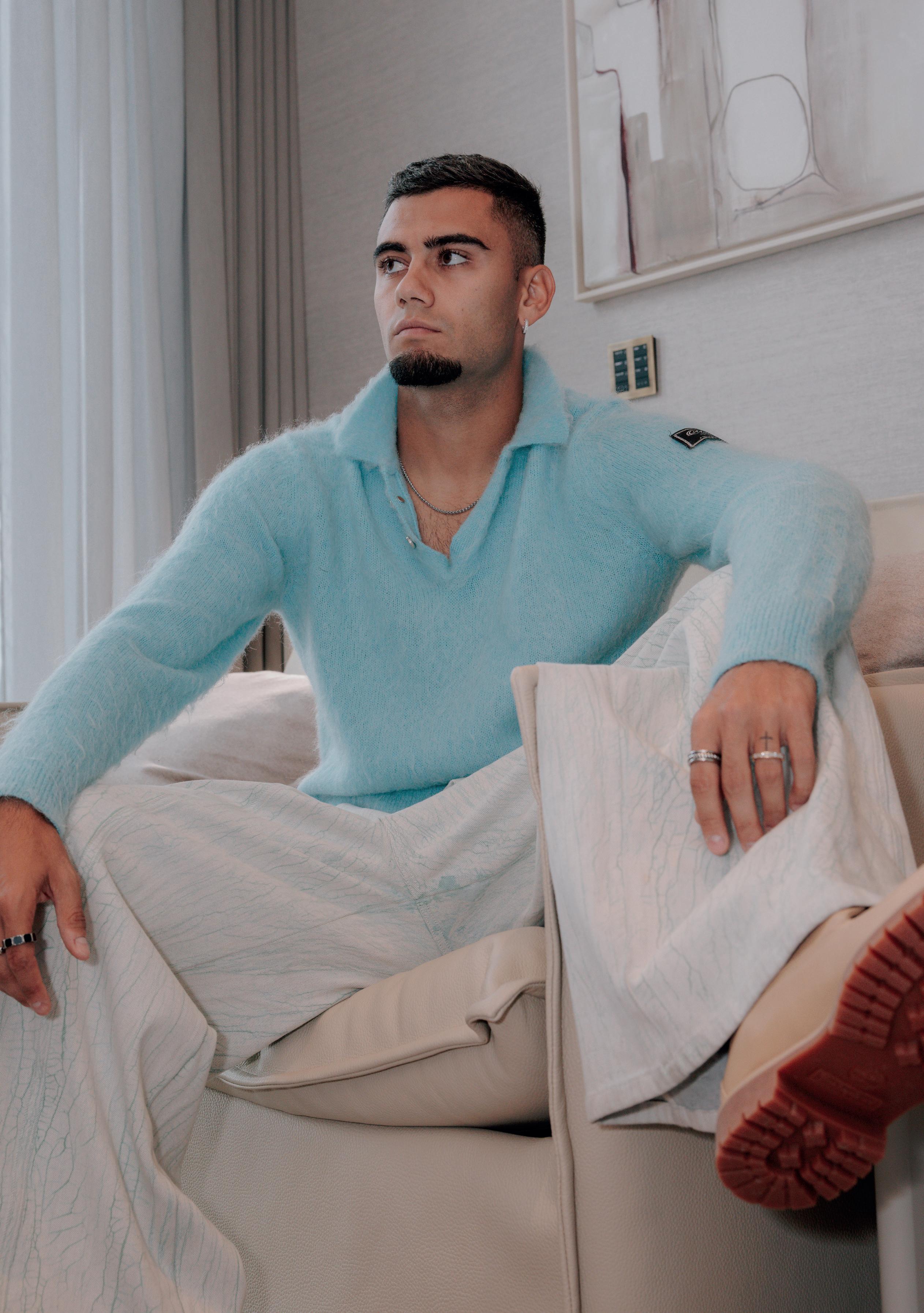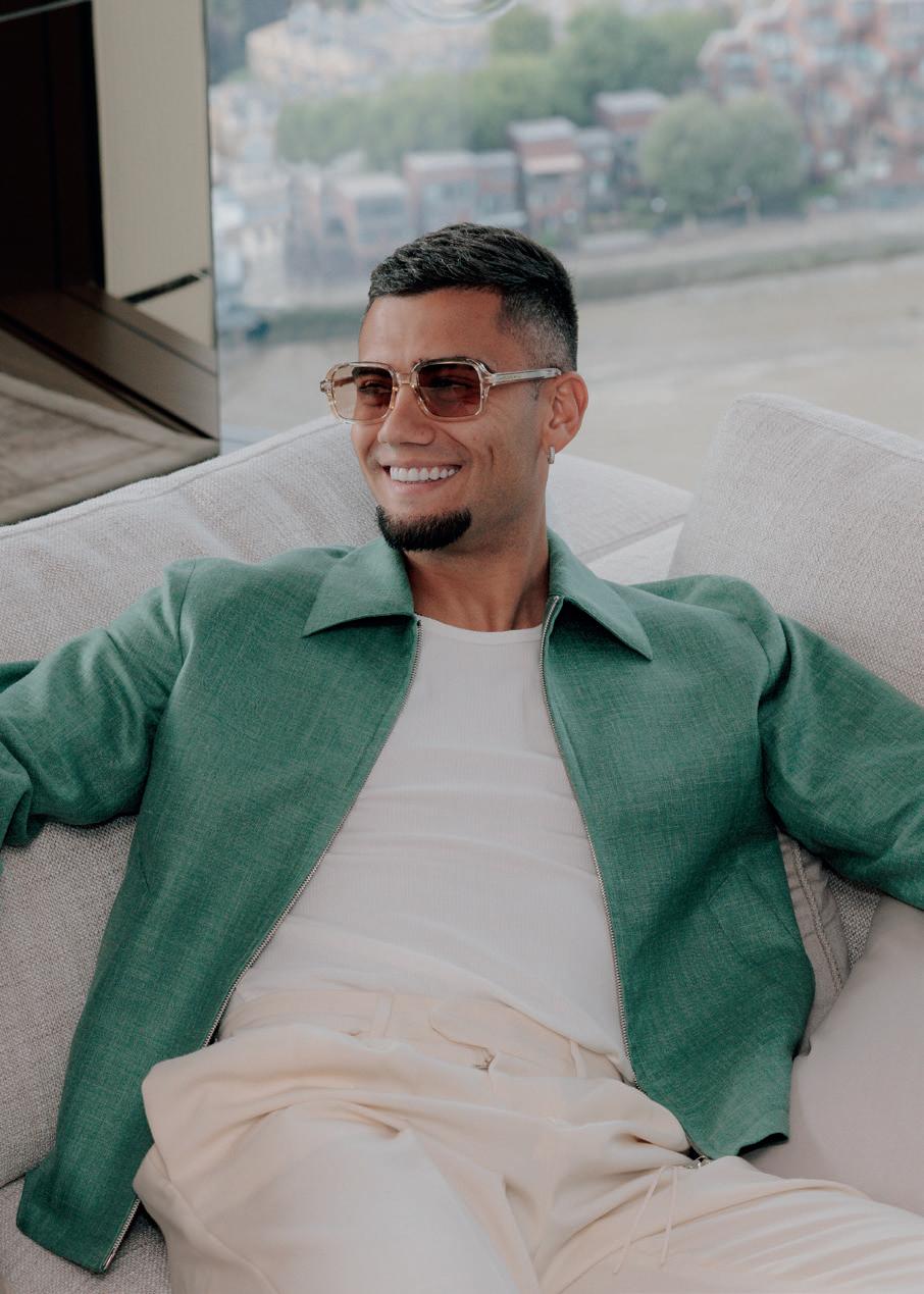Alongside Andreas, this issue brings together other voices shaping culture in their own ways: Samuel Lino shows us how authenticity and flair in both his football and his personal style set him apart as one of the game’s most exciting rising stars. Gianni Paolo, the Italian actor whose presence translates from screen to street, embodies the spirit of reinvention. And Ekow “The Engine” Essuman, a force in boxing, carries a sharp sense of discipline and identity. Each of them, in their own way, reminds us of the importance of well-being and mental strength the foundations of true success.