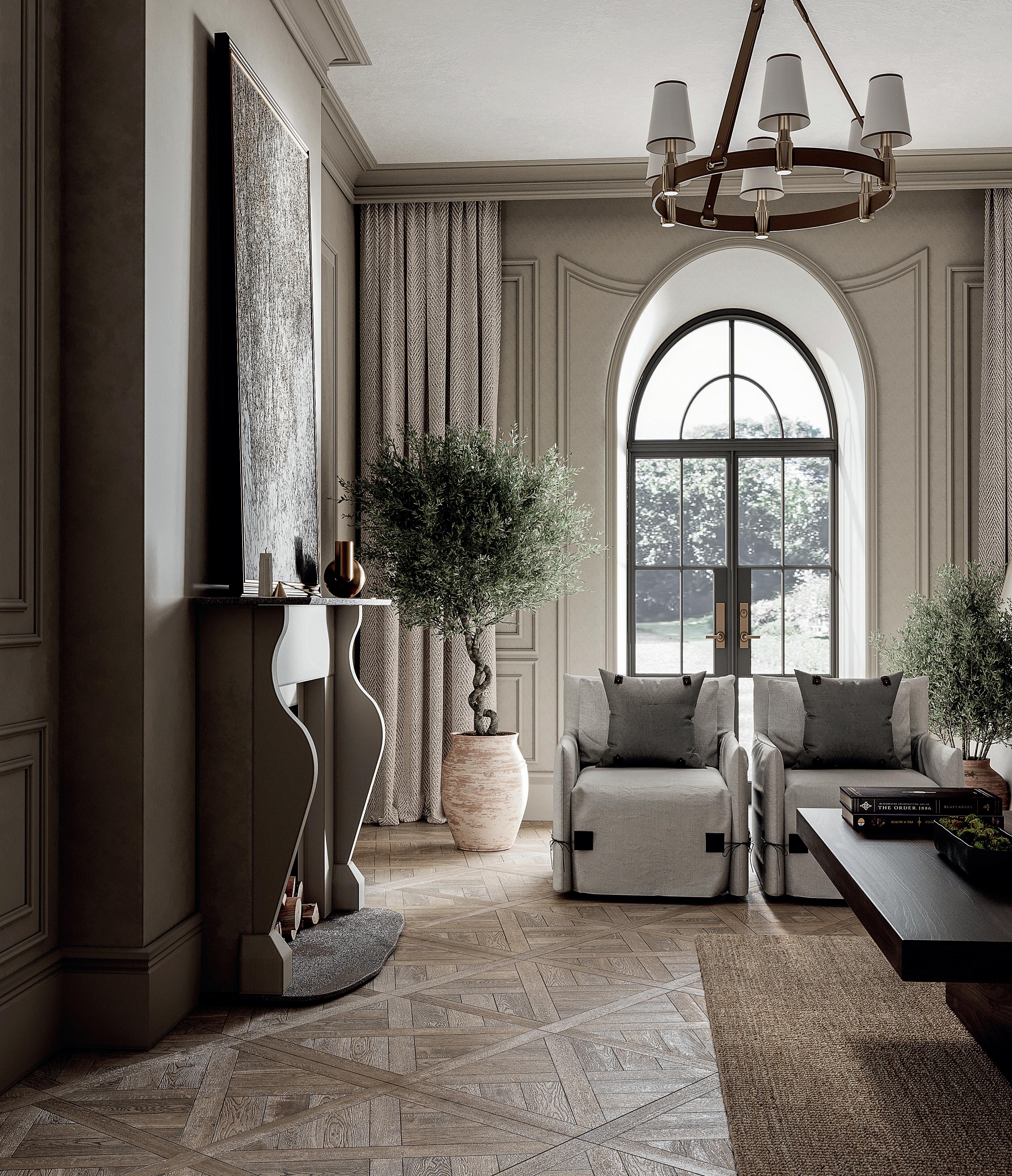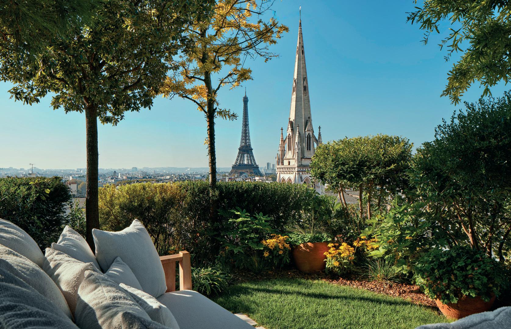 parchment and straw marquetry in the style of famous French interior designer Jean-Michel Frank. For Patricia Viel and Antonio Citterio: “In this residential sequence of public spaces opening into a secret garden, the two capitals of Paris and Rome that have competed through history to prevail in creativity, style, history, fashion, cuisine and art find the key to an armistice.” But more than all these things, the Bvlgari Hotel Paris is a marriage between a sumptuous domestic environment devoted to art and culture, and an irrepressible Italian brio that never shines more brilliantly than when it is generously shared on both sides of the Alps.