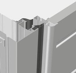 Sezione profilo anta mobile con bordo arrotondato, di serie nelle porte basculanti MyFusion.