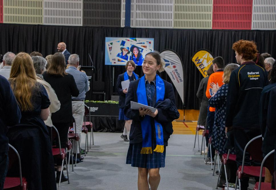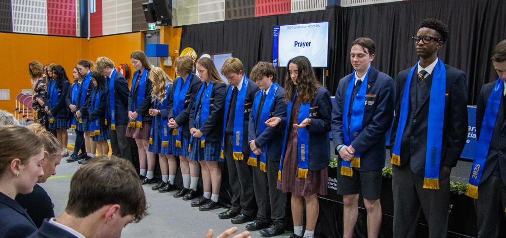 Pastor Don Gall, accompanied by Year 12 staff, concluded the assembly with a heartfelt prayer for the graduating class. The Year 12s then exited to “Time of Your Life” before joining their families for refreshments in the newly opened M1/M2 building.
