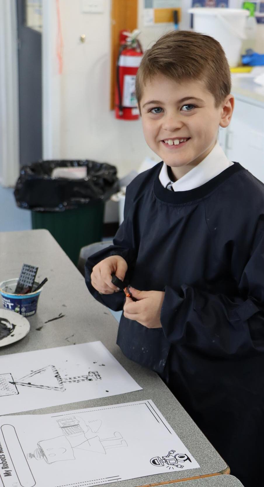 InArt during Term 4, our Lower Primary students were exploring printmaking using LEGO pieces. The Preps used the LEGO to create their names and imaginative robot designs, while also discovering the unique textures and patterns that the LEGO surfaces can produce.
