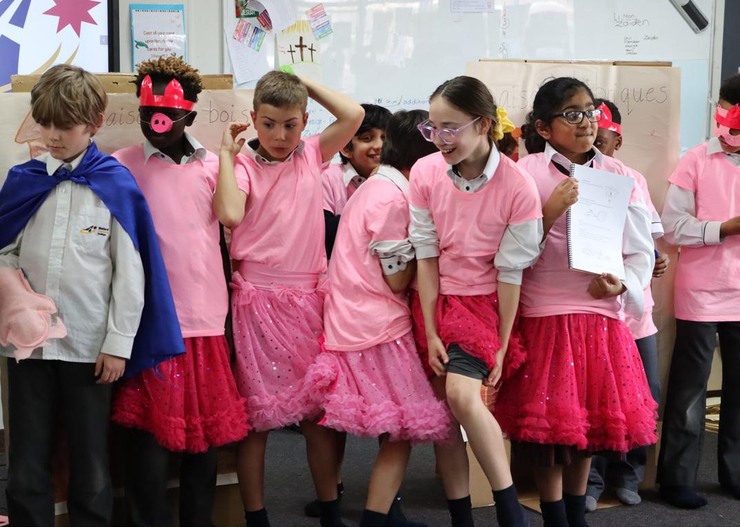 and work on various activities such as rehearsing, playing games, improvising and eventually, writing activities. Prep performed “La Poule Maboule” – the French version of “Chicken Little”, Lower Primary performed “Le petit chat cherche une famille” – the little cat looks for a family, Middle Primary performed “Les trois petits cochons” –the three little pigs and Upper Primary performed “Louis La Grenouille” – Louis the Frog. All the students did an excellent job at performing and showed fantastic unity, working together to achieve a fabulous display of French learning.