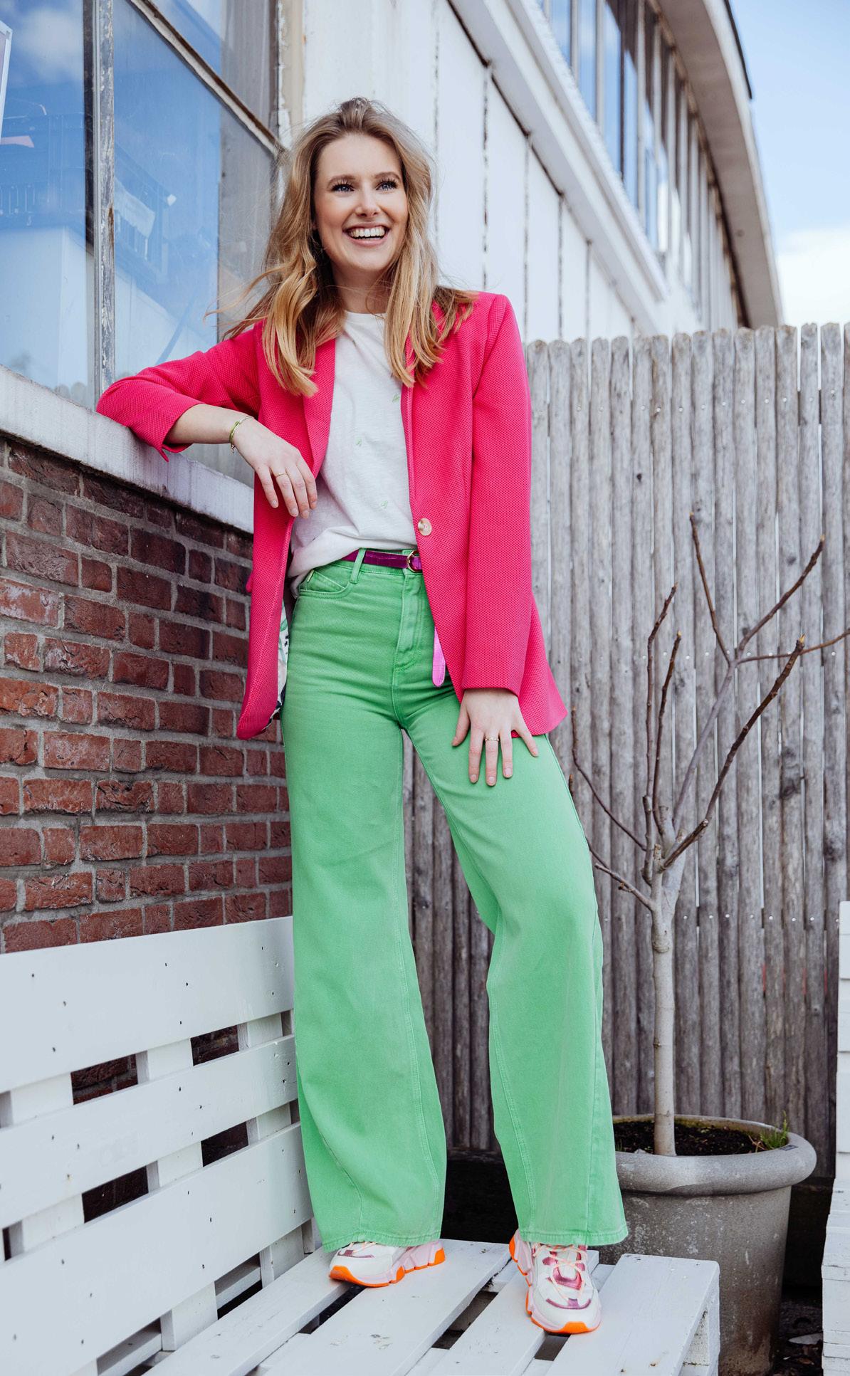 Ben jij al kaar voor color blocking? De kleuren groen en roze zijn dan een goede start. Ze hebben een groot contrast en staan (bijna) iedereen.