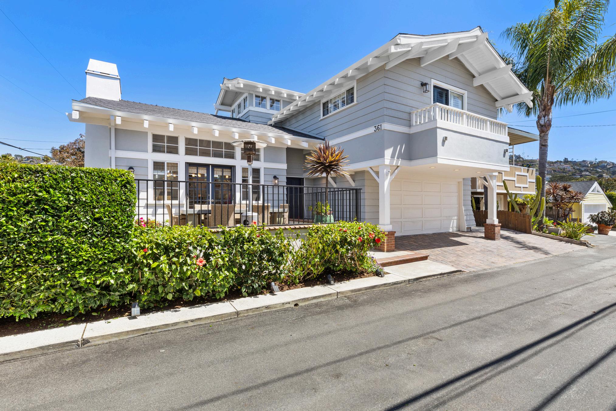 Located in the heart of Laguna Village, just blocks from the beach, this beautifully renovated cottage offers 4 bedrooms, 3.5 baths, and a perfect balance of coastal charm and modern amenities. Originally built in 1994 and fully renovated in 2009, with additional updates since, the home was designed by local architect Lance Polster and was once recognized by the Laguna Beach Architectural Guild as "the best little house." The thoughtful layout includes two primary suites one on the lower level and one upstairs along with two additional guest bedrooms. The upstairs primary suite enjoys glimpses of the Pacific, offering a peaceful retreat. The home also includes a 2-car garage and additional parking for 2 more cars, a rarity in the Village! The great room is filled with natural light, featuring vaulted beamed ceilings, a cozy fireplace flanked by built-in shelves, and a dry bar with a SubZero wine refrigerator. The open upstairs hallway is spacious and functional, featuring a built-in desk and cabinetry, perfect for work or study. The chef’s kitchen is equipped with top-of-the-line appliances, Zimbabwe granite counters, an authentic Shaw farm sink, and a bevel-edged Carrera marble backsplash. The adjacent dining area, complete with banquette seating, offers a comfortable space for meals and gatherings. Additional upgrades include custom Thoemmes cabinetry, stunning new wood floors, a new roof (2024), a new water heater (2024), and more. The private exterior features beautiful hardscaping with multiple areas designed for entertaining and dining al fresco, as well as an outdoor shower for rinsing off after a day at the beach. Located in the heart of Laguna Beach, you are just blocks from famed beaches, restaurants, and shopping. This home offers the best in coastal living.