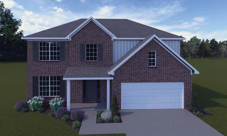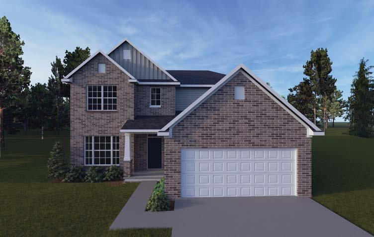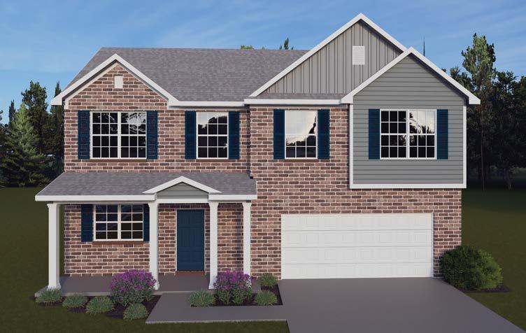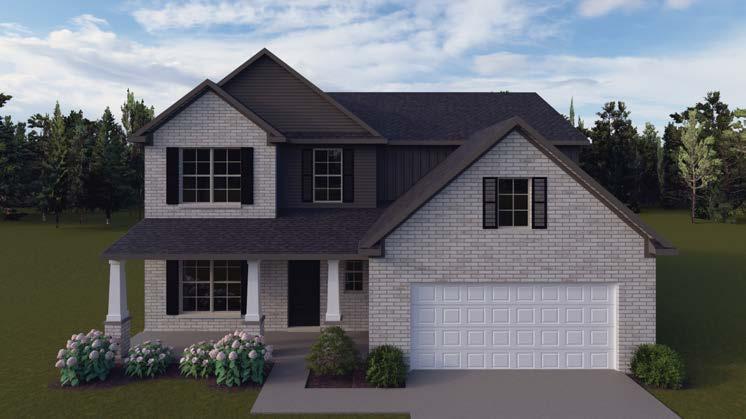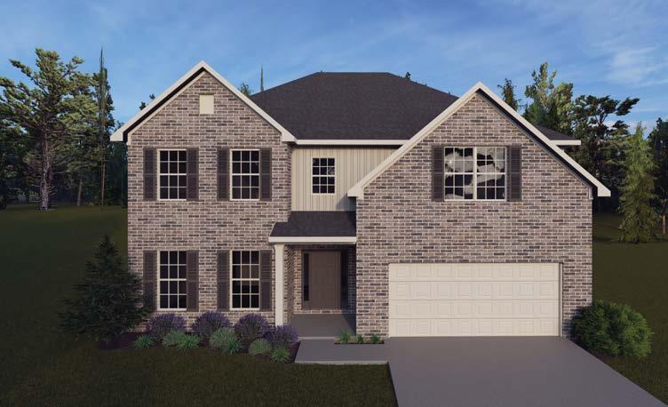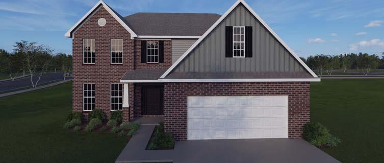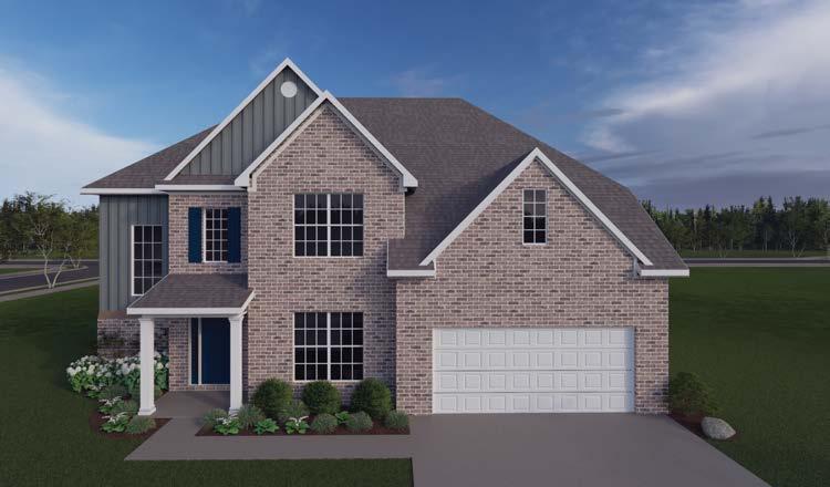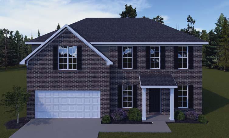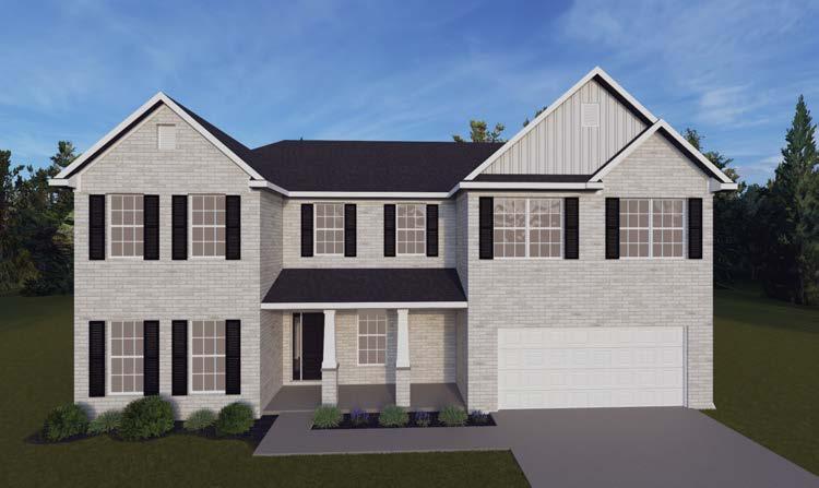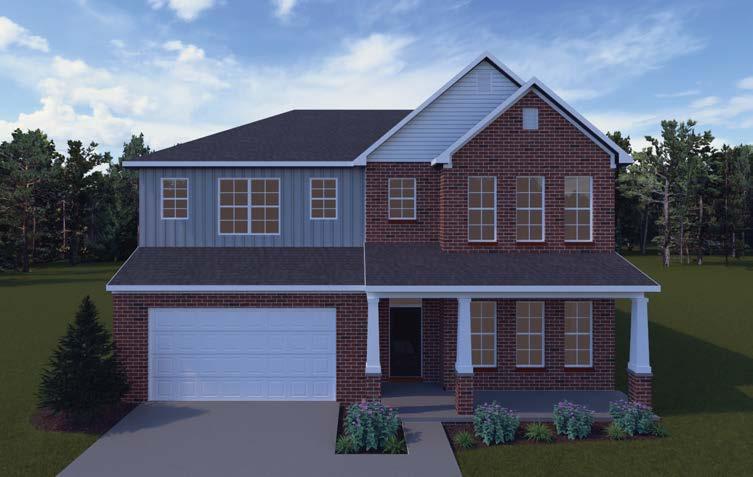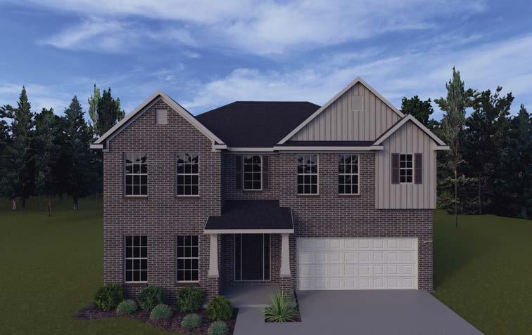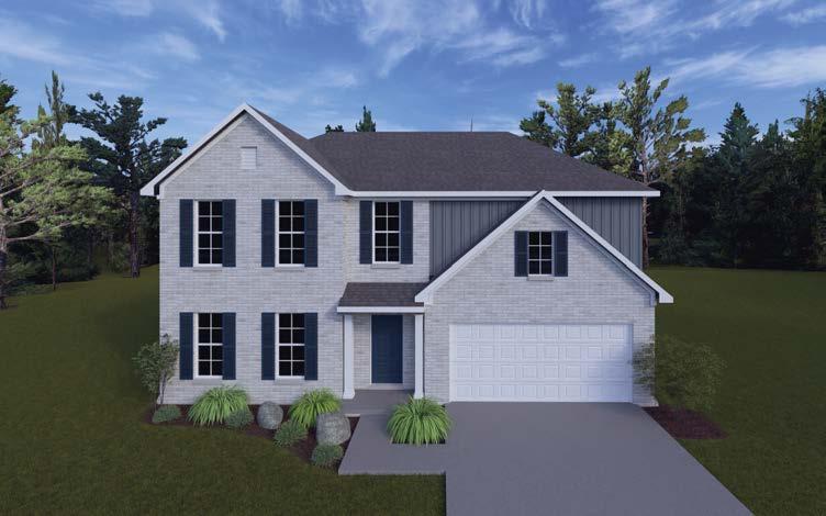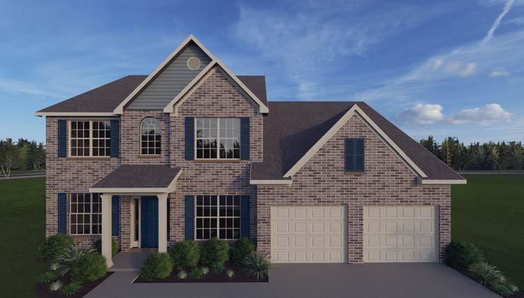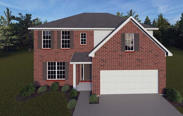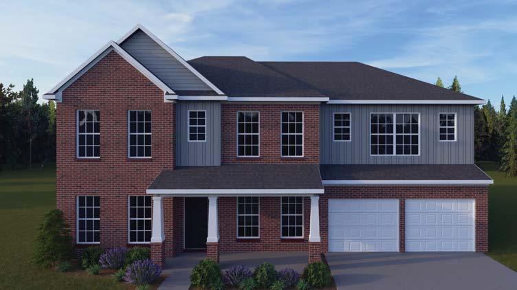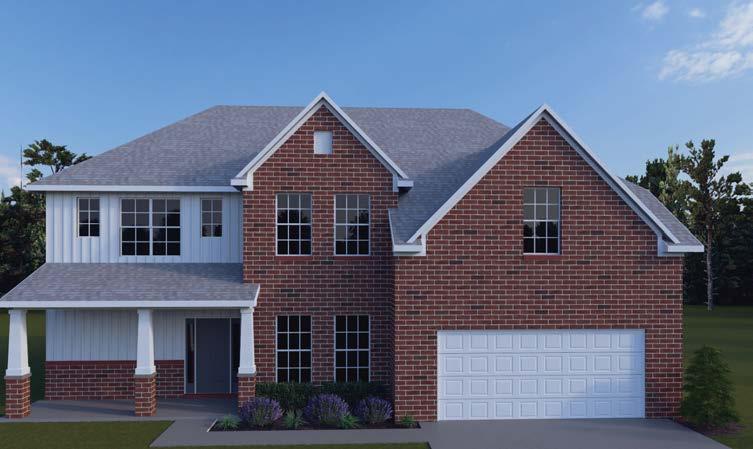 The Hudson II is an elegant two story home that combines traditional, formal styling with great livability and the potential for six bedrooms and four full baths. A two story foyer with balcony overlook creates a dramatic entry. Nine-foot ceilings are standard throughout the first floor, which has formal living and dining plus a family room with an impressive twostory bay window, and optional fireplace flanked by built-in bookshelves. The study can be converted to a first floor guest bedroom with access to a full bath option. The kitchen includes an island with counter seating, huge walk-in pantry, and separate breakfast area. The oversized mudroom/utility room combination includes as separate coat closet and builtin folding area.