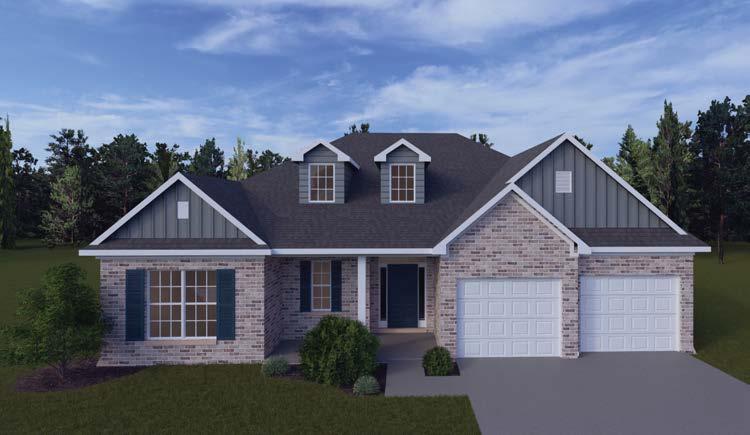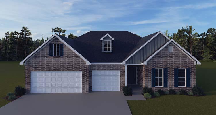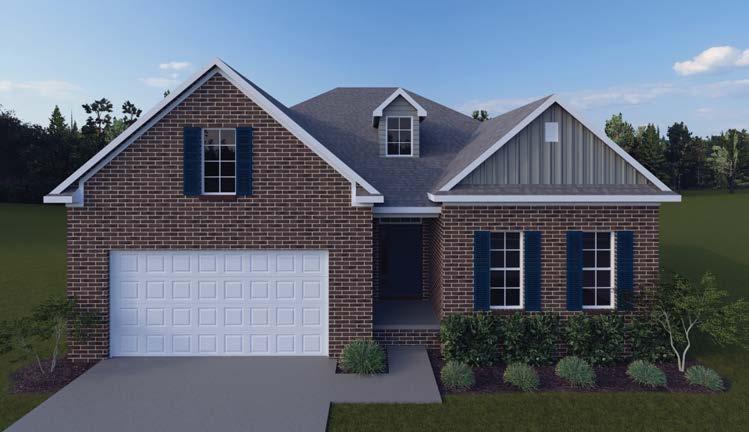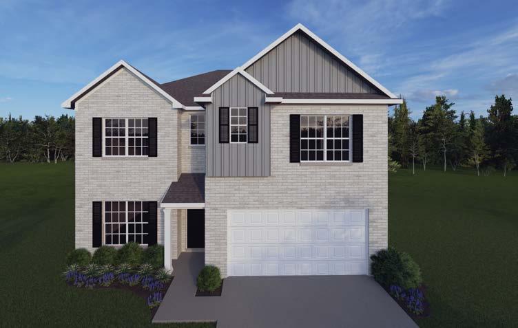 The Granville is a traditional two-story home with a firstfloor guest bedroom, along with a study and dining room off the entry. The main living areas include a large, two-story family room with optional fireplace and bookcases opening to the island kitchen and breakfast area. The kitchen adjoins the dining room via a hallway with a built-in butler’s pantry and walk-in pantry making this plan ideal for entertaining. A spacious mudroom with optional drop zone is located at the entry from the garage for additional organization. Upstairs, there are four bedrooms, a loft area, and a centrally located utility room with folding counter. The upstairs primary suite includes a sitting area, a luxurious bath with separate vanities, walk-in shower, garden tub, and two walk-in closets.