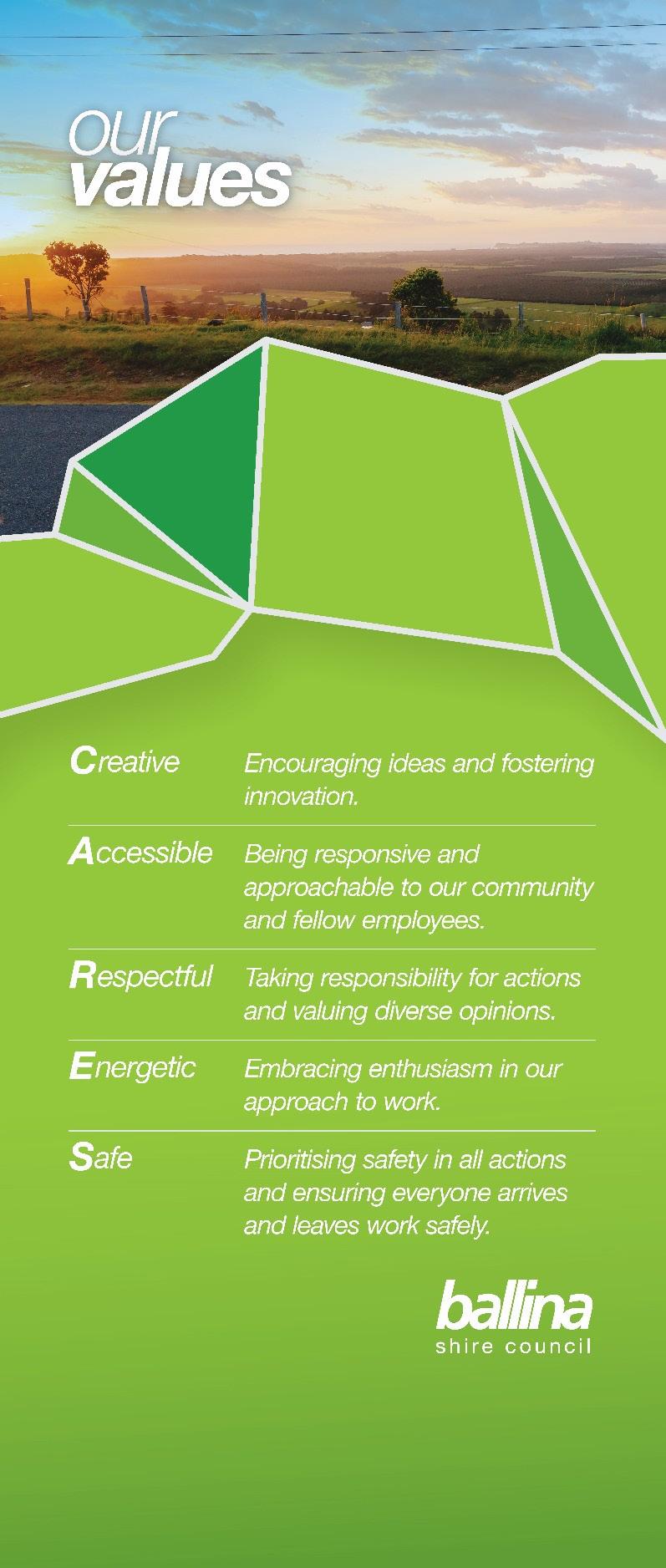 The Ballina Shire is safe with a connected community, a healthy environment, and a thriving economy.