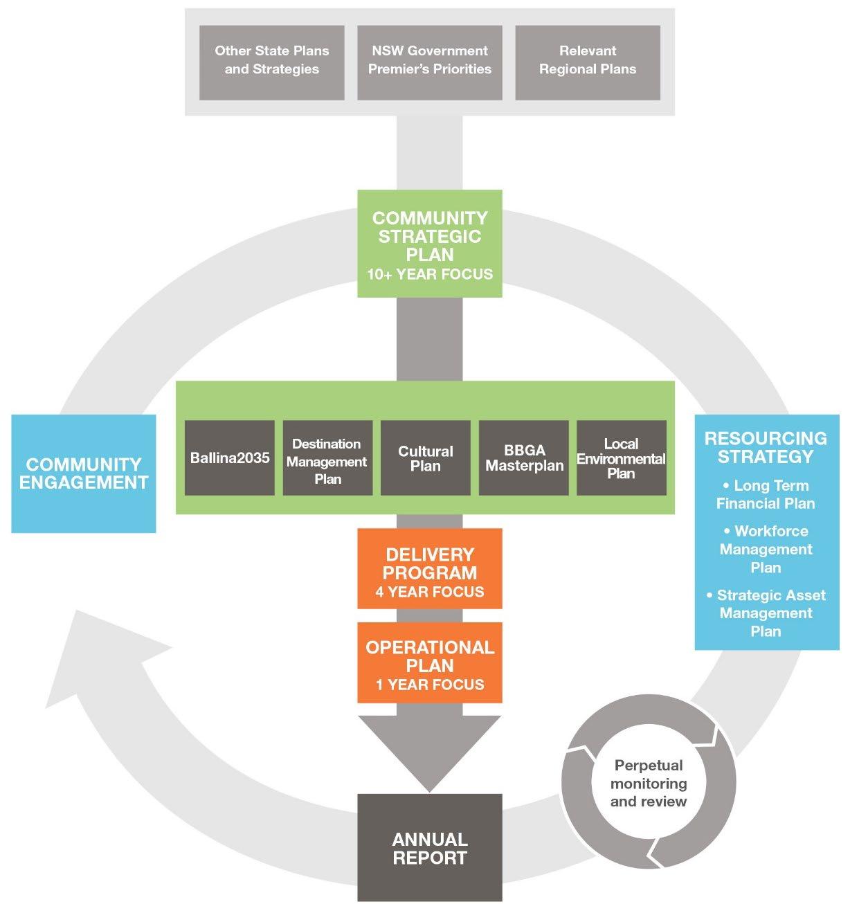 This vision, together with our priorities and aspirations for the future are encompassed in the Ballina Shire Community Strategic Plan and then translated into actions and activities in our four-year Delivery Program and annual Operational Plan.