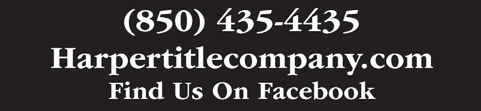 Real Estate is Our Family Business Selling New Homes Since 1982! 850.478.4141 buysellconnell.com Connell & Company Realty, Inc. | 2107 Airport Blvd | Pensacola, FL 32504 We are Northwest Florida’s premier Real Estate Brokerage. We’ve been setting the standard for excellence since 1982! Shopping Centers, Hotels, Offices and Land Developement. #BuySellConnell Harper ompany, llC 2107 airporT Blvd. pensa 32504 www.harpertitle.com When you think title, think Harper 14 live oak sTreeT GulF Breeze, Fl 32561 Shellie Isakson-Smith Loan O cer NMLS #440325 Direct: 850.777.3513 Fax: 850.777.3518 Shellie.IsaksonSmith@supremelending.com www.ShellieHomeLoans.com 1115 E Gonzalez Street | Pensacola, FL 32501 EQUAL HOUSING OPPORTUNITY Cell: 850.232.3224 Southern Region Local • Accountable • Home Loans ADVERTISEMENT. EVERETT FINANCIAL, INC. D/B/A SUPREME LENDING NMLS ID #2129 (www.nmlsconsumeraccess.org) 14801 Quorum Dr., #300, Dallas, TX 75254. 877-350-5225. Copyright © 2021. For licensing information go to: www.nmlsconsumeraccess.org. Intended for Florida consumers only, Florida Mortgage Lender Servicer License MLD909. Real Estate is Our Family Business Selling New Homes Since 1982! 850.478.4141 buysellconnell.com Connell & Company Realty, Inc. | 2107 Airport Blvd | Pensacola, FL 32504 We are Northwest Florida’s premier Real Estate Brokerage. We’ve been setting the standard for Shopping Centers, Hotels, Offices and Land Developement. #BuySellConnell H ompany, llC 2107 airporT Blvd. pensaCola, Fl 32504 When you think title, think Harper 14 live oak sTreeT GulF Breeze, Fl 32561 Shellie Isakson-Smith Loan O cer NMLS #440325 Direct: 850.777.3513 Fax: 850.777.3518 Shellie.IsaksonSmith@supremelending.com www.ShellieHomeLoans.com 1115 E Gonzalez Street | Pensacola, FL 32501 Cell: 850.232.3224 Southern Region Local • Accountable • Home Loans ADVERTISEMENT. EVERETT FINANCIAL, INC. D/B/A SUPREME LENDING NMLS ID #2129 (www.nmlsconsumeraccess.org) 14801 Quorum Dr., #300, Dallas, TX 75254. 877-350-5225. Copyright © 2021. For licensing information go to: www.nmlsconsumeraccess.org. Intended for Florida consumers only, Florida Mortgage Lender Servicer License MLD909. Real Estate is Our Family Business Selling New Homes Since 1982! 850.478.4141 buysellconnell.com Connell & Company Realty, Inc. | 2107 Airport Blvd | Pensacola, FL 32504 We are Northwest Florida’s premier Real Estate Brokerage. We’ve been setting the standard for excellence since 1982! #BuySellConnell Harper TiTle Company, llC 2107 a pensaCola (850)435-4435 www.harpertitle.com When you think title, think Harper sTreeT , Fl 32561 Shellie Isakson-Smith Loan O cer NMLS #440325 Direct: 850.777.3513 Fax: 850.777.3518 Shellie.IsaksonSmith@supremelending.com www.ShellieHomeLoans.com 1115 E Gonzalez Street | Pensacola, FL 32501 EQUAL HOUSING OPPORTUNITY Cell: 850.232.3224 Southern Region Local • Accountable • Home Loans ADVERTISEMENT. EVERETT FINANCIAL, INC. D/B/A SUPREME LENDING NMLS ID #2129 (www.nmlsconsumeraccess.org) 14801 Quorum Dr., #300, Dallas, TX 75254. 877-350-5225. Copyright © 2021. For licensing information go to: www.nmlsconsumeraccess.org. Intended for Florida consumers only, Florida Mortgage Lender Servicer License MLD909. Selling New Homes Since 1982! 850.478.4141 buysellconnell.com Connell & Company Realty, Inc. | 2107 Airport Blvd | Pensacola, FL 32504 Harper TiTle Company, llC 2107 airporT Blvd. pensaCola, Fl 32504 (850) 435-4435 www.harpertitle.com When you think title, think Harper 14 live oak sTreeT GulF Breeze, Fl 32561 EQUAL HOUSING OPPORTUNITY Local Real Estate is Our Family Business Selling New Homes Since 1982! 850.478.4141 buysellconnell.com Connell & Company Realty, Inc. | 2107 Airport Blvd | Pensacola, FL 32504 We are Northwest Florida’s premier Real Estate Brokerage. We’ve been setting the standard for excellence since 1982! With over 50 Full-Time Realtors, we have specialists in all areas of Real Estate ranging from Residential Sales to Commercial Shopping Centers, Hotels, Offices and Land Developement. #BuySellConnell Harper TiTle Company, llC 2107 airporT Blvd. pensaCola, Fl 32504 When you think title, think Harper 14 live oak sTreeT GulF Breeze, Fl 32561 Shellie Isakson-Smith Loan O cer NMLS #440325 Direct: 850.777.3513 Fax: 850.777.3518 Shellie.IsaksonSmith@supremelending.com www.ShellieHomeLoans.com 1115 E Gonzalez Street | Pensacola, FL 32501 EQUAL HOUSING OPPORTUNITY Cell: 850.232.3224 Southern Region Local • Accountable • Home Loans ADVERTISEMENT. EVERETT FINANCIAL, INC. D/B/A SUPREME LENDING NMLS ID #2129 (www.nmlsconsumeraccess.org) 14801 Quorum Dr., #300, Dallas, TX 75254. 877-350-5225. Copyright © 2021. For licensing information go to: www.nmlsconsumeraccess.org. Intended for Florida consumers only, Florida Mortgage Lender Servicer License MLD909. Real Estate is Our Family Business Selling New Homes Since 1982! 850.478.4141 buysellconnell.com Connell & Company Realty, Inc. | 2107 Airport Blvd | Pensacola, FL 32504 We are Northwest Florida’s premier Real Estate Brokerage. We’ve been setting the standard for excellence since 1982! With over 50 Full-Time Realtors, we have specialists in all areas of Real Estate ranging from Residential Sales to Commercial Shopping Centers, Hotels, Offices and Land Developement. #BuySellConnell Harper TiTle Company, llC 2107 airporT Blvd pensaCola, Fl 32504 www.harpertitle.com When you think title, think Harper 14 live oak sTreeT G B , Fl 32561 Shellie Isakson-Smith Loan O cer NMLS #440325 Direct: 850.777.3513 Fax: 850.777.3518 Shellie.IsaksonSmith@supremelending.com www.ShellieHomeLoans.com 1115 E Gonzalez Street | Pensacola, FL 32501 EQUAL HOUSING OPPORTUNITY Cell: 850.232.3224 Southern Region Local • Accountable • Home Loans ADVERTISEMENT. EVERETT FINANCIAL, INC. D/B/A SUPREME LENDING NMLS ID #2129 (www.nmlsconsumeraccess.org) 14801 Quorum Dr., #300, Dallas, TX 75254. 877-350-5225. Copyright © 2021. For licensing information go to: www.nmlscon