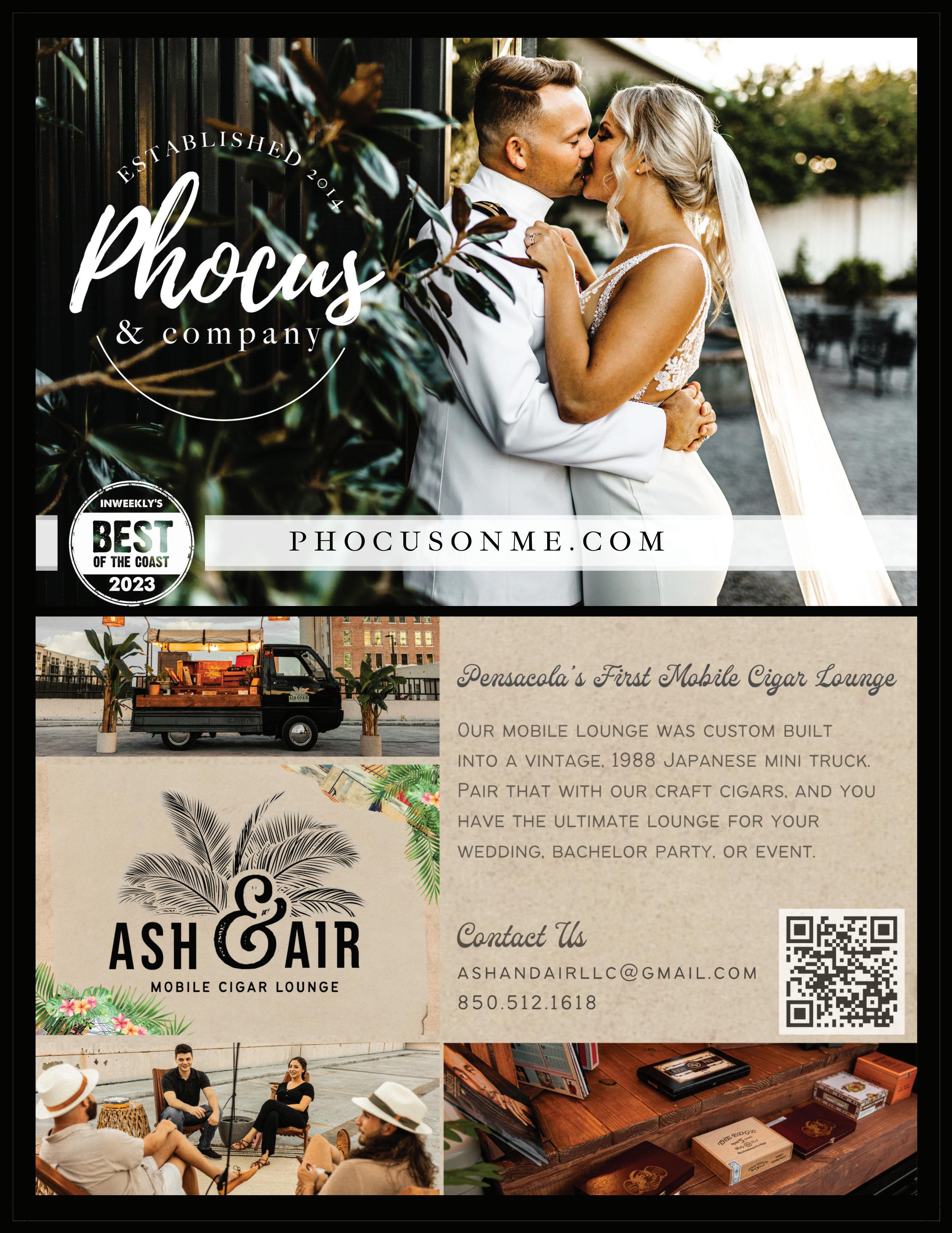 2024 PENSACOLA MAGAZINE PENSACOLAMAGAZINE.COM BRIDAL PARTY PROPOSALS SAVOR THE MOMENT PRETTY IN PEACH HERE COMES THE BRIDE! WEDDINGS