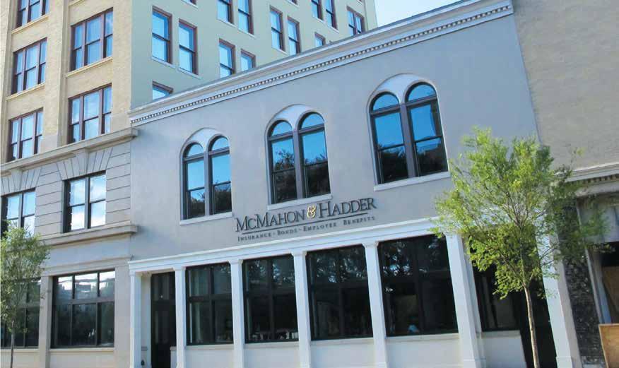 Your trusted insurance firm of over 25 years is now backed by Higginbotham, one of the largest independent insurance firms in the US. As proud as we are to be on top, our number one priority is you. With Higginbotham, we can offer a single source solution to secure your financial future. 11 West Garden Street, Pensacola, FL 32502 850-484-7911 | www.mcmahonhadder.com A Higginbotham Company Business Insurance | Risk Management | Employee Benefits Benefit Administration | Life Insurance | Executive Benefits Retirement Plans | HR Services | Home & Auto