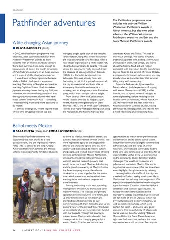 connected Kyoto and Tokyo. This was an enormous privilege. We stayed in ryokan, traditional Japanese inns, bathed (communally, and naked) in onsen, hot springs, and learnt about the history, food, art and religion associated with the region. On the penultimate day, we hiked to the summit of Mount Ontake, a gorgeous holy volcano, whose name you may already know as it erupted later that summer, killing many with no warning. From the Nakasendo, I journeyed to Tokyo, where I had the pleasure of staying with Alexis Mavropoulos (1998) and his fiancée, and to Kyoto, where I indulged in some sightseeing, before heading to the nearby town of Kameoka, where Alex Kerr (1974) lives for half the year. Alex was a Rhodes scholar in Chinese Studies, having previously studied Japanese, and I found him a most interesting and welcoming host.