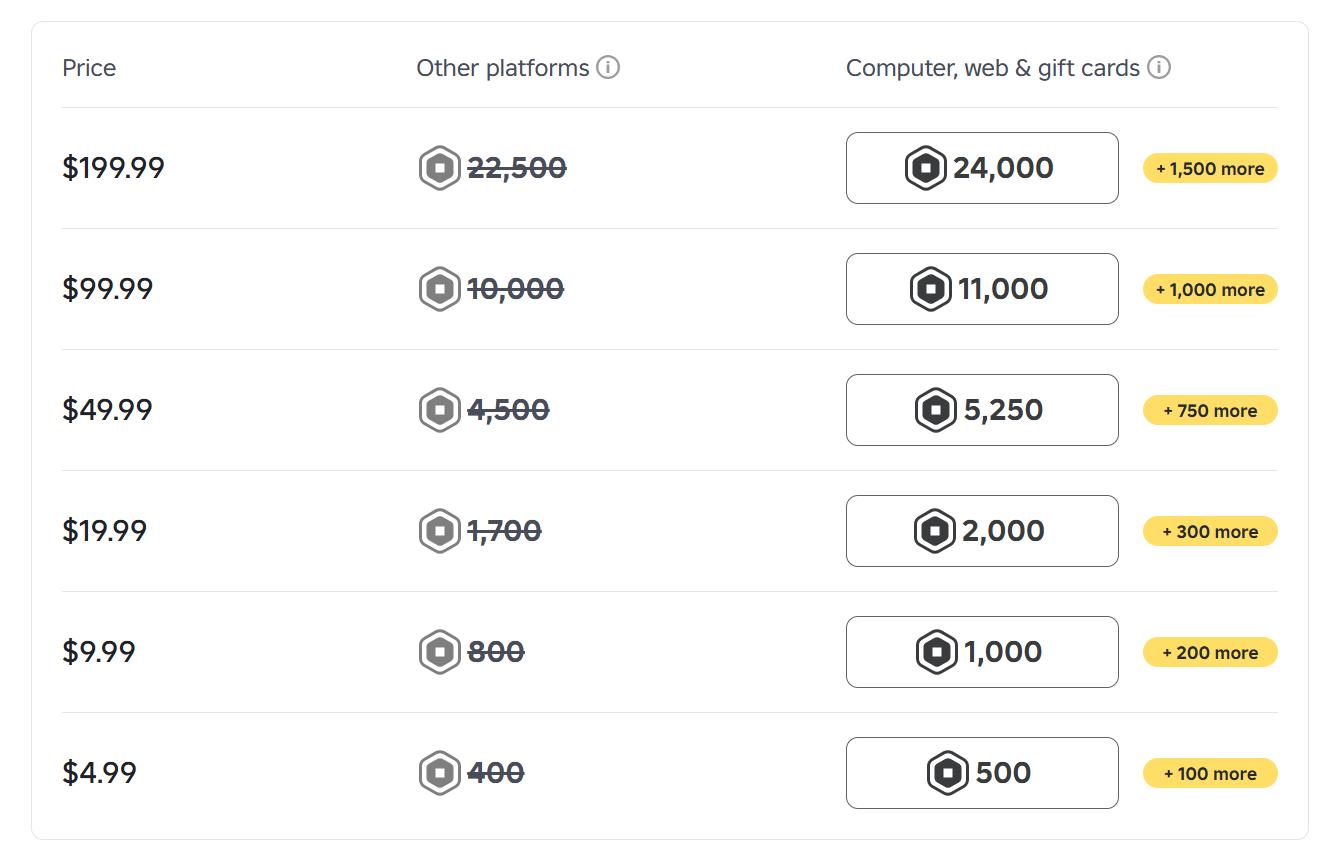 D2C and Gift Card customers get up to 25% more Robux per dollar than in -app buyers
