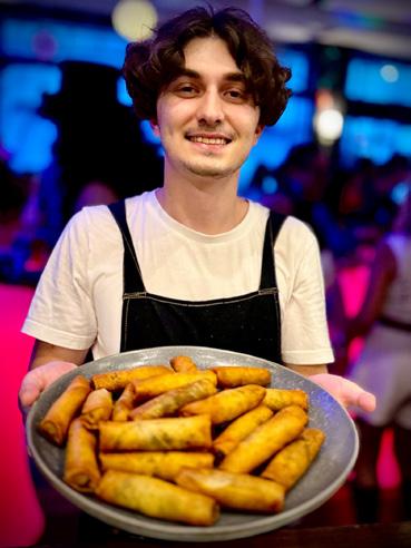 Although the menu is meatcentric, there are plenty of vegetarian options. Key dishes include Wagyu beef tongue pastrami, spigarello, capers, and sauce tonatto, sweet bread and prawn paella with wagyu fat chilli crunch, kangaroo and maraschino cherry empanadas, and seed encrusted-whole roasted baby pumpkin with mushroom risotto.