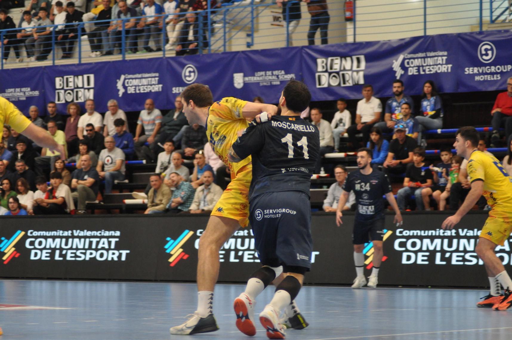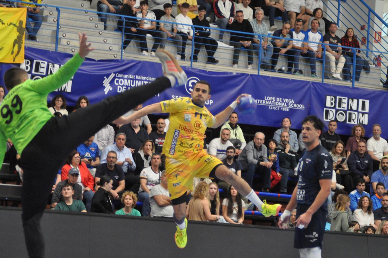 El Servigroup Hoteles Benidorm no pudo con un sólido BM Castellón en la duodécima jornada de la Segunda Nacional Masculina. A pesar del empuje local, el conjunto visitante se impuso con autoridad gracias a su solidez defensiva y su acierto en ataque. El encuentro comenzó igualado, con un 3-3 en los primeros 5 minutos, pero a medida que avanzaba la primera mitad, Castellón fue imponiendo su ritmo. Al descanso, el marcador reflejaba una ventaja mínima para los visitantes (12-15), aunque con sensaciones de dominio progresivo. En la segunda parte, los errores no forzados y las pérdidas de balón castigaron a los locales, que vieron cómo el BM Castellón se distanciaba definitivamente en el marcador. Rodrigo Navarro, con 9 goles, y Marc Sánchez (6) lideraron el ataque castellonense.