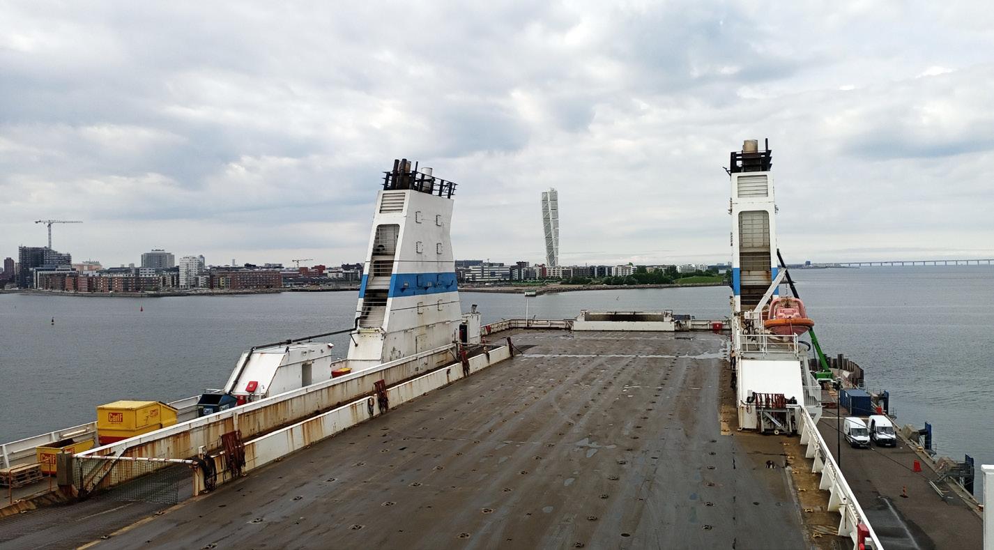 Canopée again offers an example of this expedient way forward because the latestgeneration wind-assist technology incorporated on the ro-ro is suitable for retrofitting on virtually all ship types as well as newbuildings. OceanWings’ solutions are now available across multiple segments and sizes, including for tankers, bulkers, car carriers, and cruisers. For ro-ros, OceanWings leverages its lightweight design and a very low centre of gravity to match the stability objectives of such vessels.