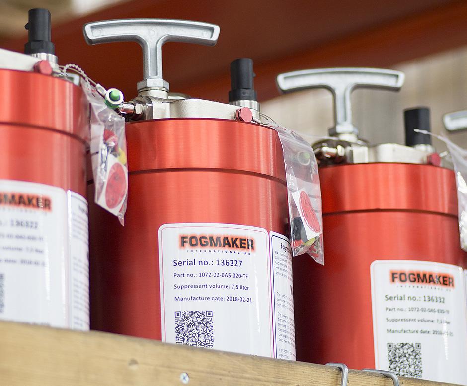We like to use the fire triangle to explain how our high-pressure, water-based mist system works. Fire needs three components to break out: heat, fuel, and oxygen. As such, Fogmaker’s solution attacks all of them. Water is the best agent one can use for cooling in enclosed spaces, like engine rooms. The water-based mist evaporates, taking off heat by creating a steam that also gets rid of oxygen (one liter of water can create 1,700 litres of steam). High-pressure goes handin-hand with the system’s longer activation time: more heat is taken out through a longer period (typically 45-60 seconds compared to 20 for low-pressure solutions).