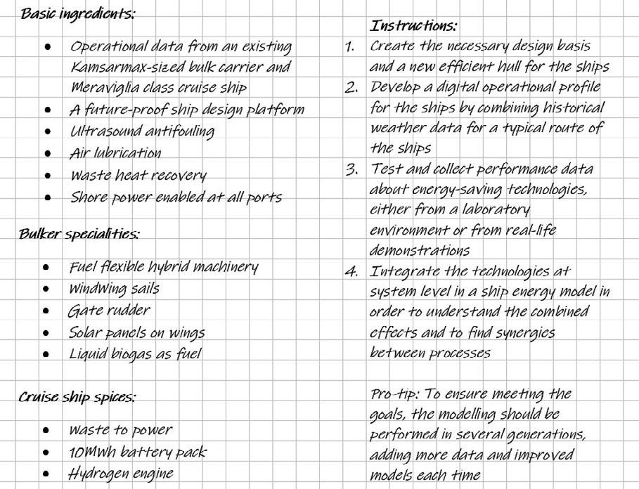 One of the leading ideas in CHEK was to explore these three fundamentals as a synthesis, considering a typical operational pattern for the case ships. Without a doubt, multiple variations and complex modelling meant that our ‘decarbonisation kitchen’ started to get very crowded. Our role in the project was thus very central since it included orchestrating the various solutions in the conceptual designs.