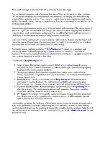 That's where ⇒ HelpWriting.net⇔ comes in. We understand the complexities of dissertation writing and offer expert assistance to help you navigate the process smoothly. Our team of experienced writers specializes in various fields and can provide tailored support at every stage of your dissertation journey.