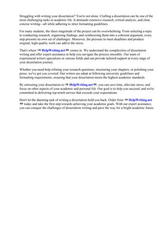 By entrusting your dissertation to ⇒ HelpWriting.net⇔, you can save time, alleviate stress, and focus on other aspects of your academic and personal life. Our goal is to help you succeed, and we're committed to delivering top-notch service that exceeds your expectations.