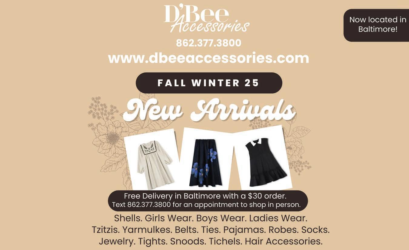 The new school year is underway and Jewish Educational Services (JES) found a sweet way to show appreciation for the community’s educators: Back-toSchool baskets brimming with snacks and supplies for the rabbeim and teachers. JES staff visited nearly every Jewish day and yeshiva school in Baltimore - including Ateres, Bais Yaakov, Beth Tfiloh, Bnos Yisroel, Cheder Chabad, Darchei Noam Montessori, Krieger Schechter Day School, Ohr Chadash Academy, Talmudical Academy, Tashbar, Torah Institute and Toras Simcha - delivering baskets and warm wishes for a successful year ahead.