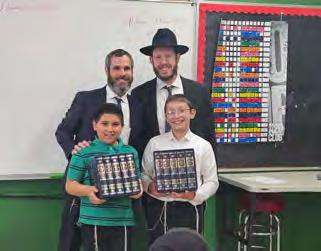 Pictured here is Rabbi Shai Scherer, Program Director at Yeshivas Toras Simcha, Rabbi Hillel Shepard, Menahel of YTS, Naftali Kraines 5th Grade and Daniel Herman 7th grade, both who won a Gorgeous set of Mikraos Gedolos from Pirchei National contest for learning Shnayim Mikra Vi-Echad Targum Contest weekly.