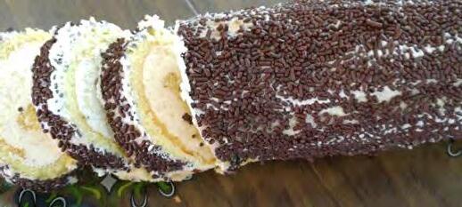 3. Cut cake in half through diameter. Beat Rich Whip and add 3 Tbl sugar, and beat until stiff and glossy. Put ½ of the whipped cream into another bowl. Cut up ½ of the strawberries and add to the whipped cream in the bowl. Smear the strawberry-cream mixture onto the bottom layer of the cake. Place top layer over cream mixture, and spread rest of whipped cream on top.