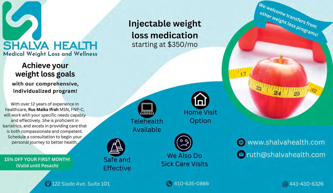 Tehila Soskel is a registered dietitian nutritionist with a private practice in the Five Towns. She sees clients for weight loss, diabetes, and other various diseases. Appointments can be made for in-person or virtual sessions: 516-457-8558, tehilasoskelrd@gmail.com, tehilasoskelnutrition.com.