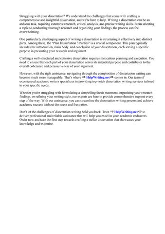 Don't let the challenges of dissertation writing hold you back. Trust ⇒ HelpWriting.net⇔ to deliver professional and reliable assistance that will help you excel in your academic endeavors. Order now and take the first step towards crafting a stellar dissertation that showcases your knowledge and expertise.