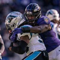 ✗ The Ravens ranked No. 1 vs. the run (80.1 ypg allowed) and No. 2 in sacks (54), behind career highs from OLB Kyle Van Noy (12.5) and OLB Odafe Oweh (10). ... CB Marlon Humphrey produced an AFC-best 6 INTs (tied for third in the league overall).