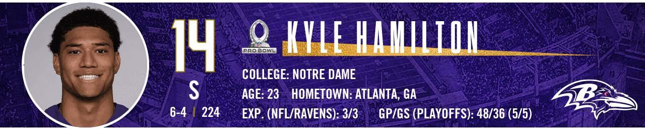 S Kyle Hamilton made his secondstraight Pro Bowl after totaling a career-high 107 tackles (77 solo) to go along with 4 TFL, 2 sacks, 2 FFs, 1 FR, 1 INT & 9 PD. He was the NFL's only DB in 2024 and the first DB in Ravens history to notch at least 100 tackles, 2 sacks, 2 FF, 1 INT and 1 FR.