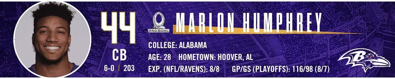 CB Marlon Humphrey earned his fourth-career Pro Bowl honor after posting an AFC-best 6 INTs and 15 PD. Adding a career-high 5 TFL, he became the first Ravens CB to notch at least 5 INTs and 5 TFL in a single season.