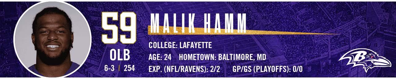 Saw action in 11 games (nine starts), recording 33 tackles (26 solo), 1 TFL, 2 PD and 1 FR Helped Baltimore s defense rank No. 1 against the run (80.1 ypg), No. 2 in sacks (54) and No. 5 (tied) in yards per play allowed (5.2)