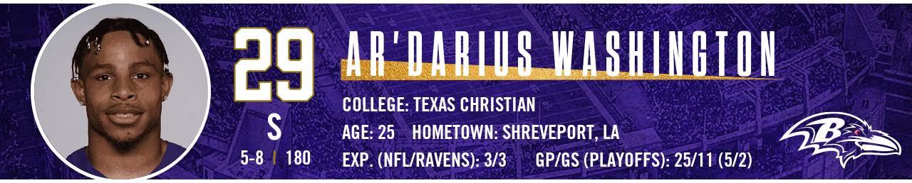 S Ar'Darius Washington helped spark a defensive turnaround after being inserted as a full-time starter in Week 11 (at Pit.). He finished with career highs in tackles (62), PD (8), INTs (2) and FFs (1).