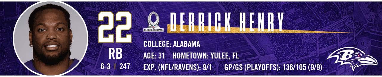 Baltimore's No. 1 rush attack (187.6 ypg) was led by RB Derrick Henry, who produced the NFL's second-most ground yards (1,921) and most (tied) rushing TDs (16). Henry set the franchise's single-season rushing TDs (16) & total TDs (18) records and now owns the most seasons (three) in NFL history with at least 1,500 rushing yards and 15 rushing TDs. He also became the first player in NFL history with multiple 1,900yard rushing campaigns (two).