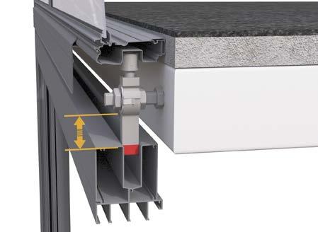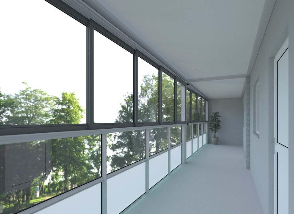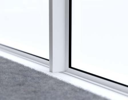 Skinneprofilen består av en homogen rørprofil for økt stabilitet. Midtsprossen går mot den vertikale profilen, noe som gjør fronten på innglassingen stabil. Alle innfestinger dekkes av en fargekoordinert justeringsprofil ved gulvet. Glass- og platematerialer kan byttes fra innsiden av balkongen for å forenkle eventuelt vedlikehold.
