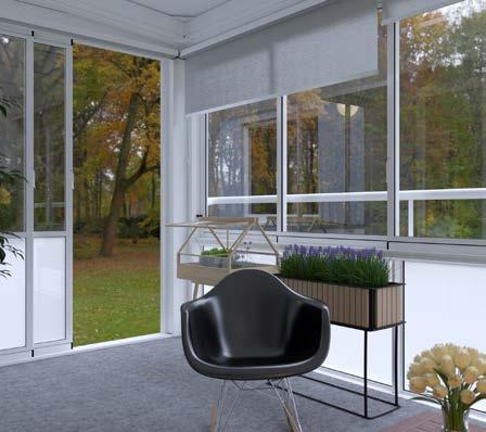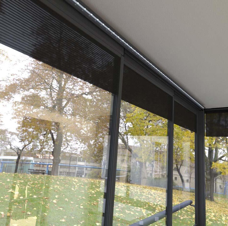 En rullegardin til balkongsinnglassingen gir god beskyttelse mot sol, varme og innsyn, samtidig som balkongen får et hyggelig miljø. Alle våre innglassingssystemer er forberedt for rullegardiner og utstyrt med integrerte beslag og beskyttelsesdeksler.