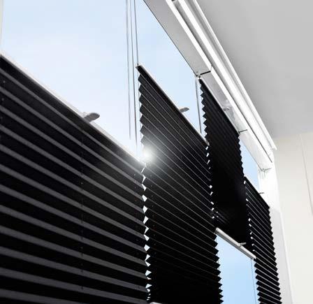Med plisségardiner i innglassingens luker skapes en designet helhet. Våre plisségardiner har toveisfunksjon, noe som betyr at de kan plasseres hvor som helst i luken. Den brettede tekstilen gir balkongen liv, og sammen med vårt slanke og rammefrie system blir plisségardinene en fin interiørdetalj.