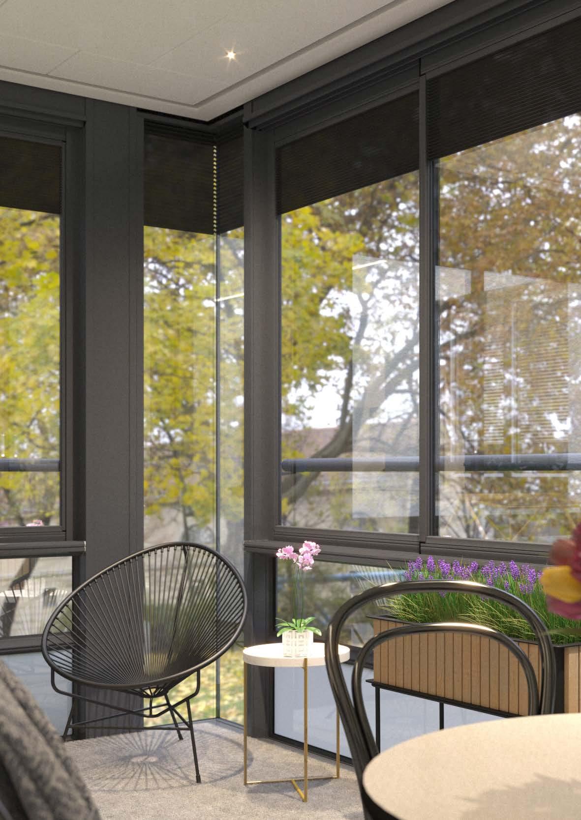 Vi elsker lyset og solens deilige stråler. Men av og til vil vi ha muligheten til å skjerme oss, både mot sol og nysgjerrige forbipasserende. Balco har sol- og innsynsskjerming som passer til alle innglassingssystemene våre.